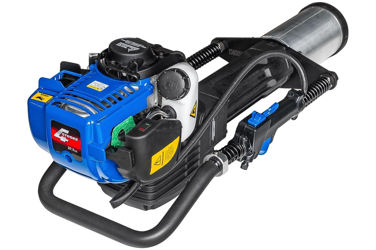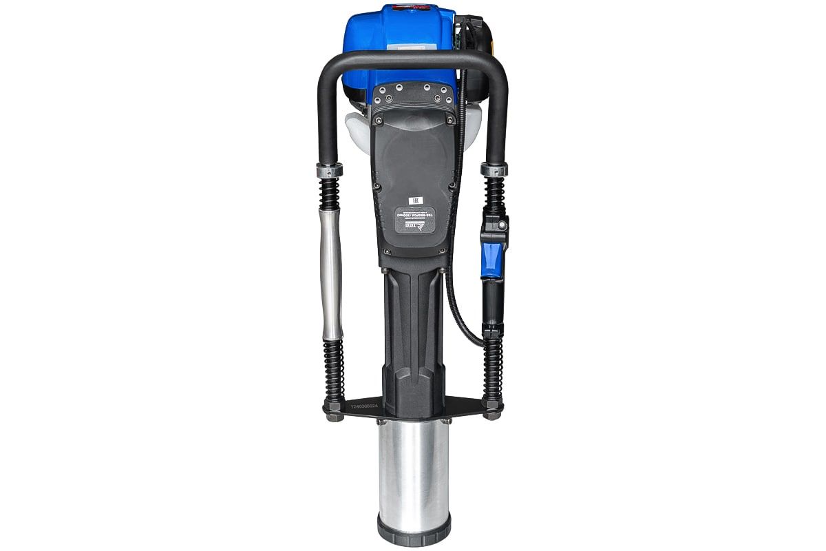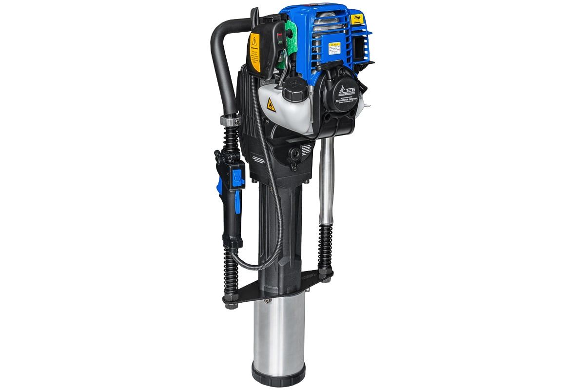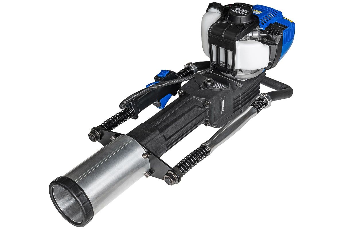 Копер с бензиновым четырехтактным двигателем для забивки столбов диаметром до 100 мм. Мощность двигателя инструмента — 1,36 кВт. Главным образом этот инструмент используется при строительстве ограждений. В отличии от электрического, он более мо