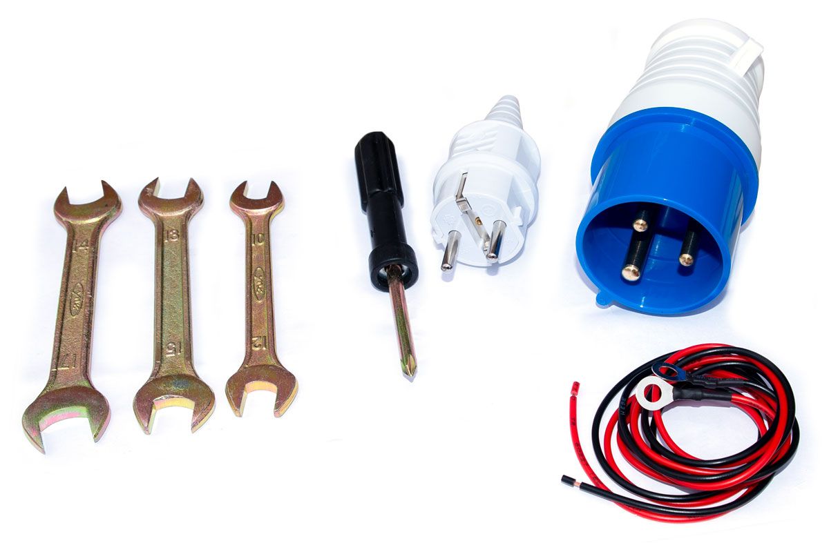 - Розетки: 220В – 16А 1 шт.(европейского стандарта) и 220В - 32А 1 шт.(промышленная), что позволяет подключать разные электроинструменты