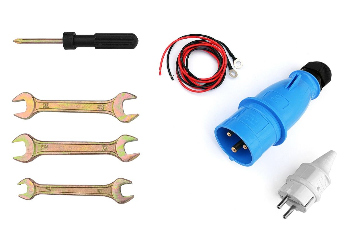 Электрическая вилка, разъем для АВР, предпусковой подогреватель, комплект проводов, колёса