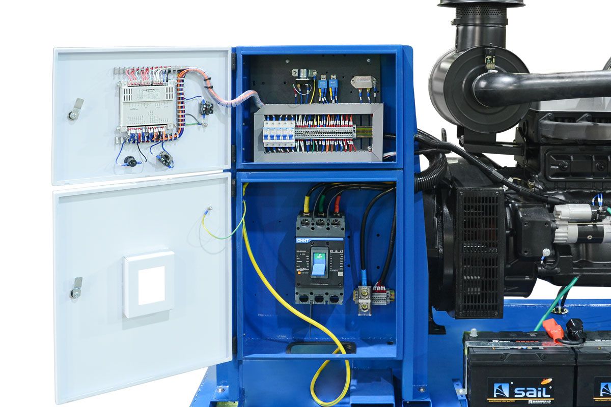 Органы управления позволяют осуществлять запуск и остановку ДГУ в ручном режиме. Система управления в автоматическом режиме осуществляет стабилизацию выходных параметров электроэнергии и подержание стабильной работы генераторной установки при изменяемой внешней электрической нагрузке.