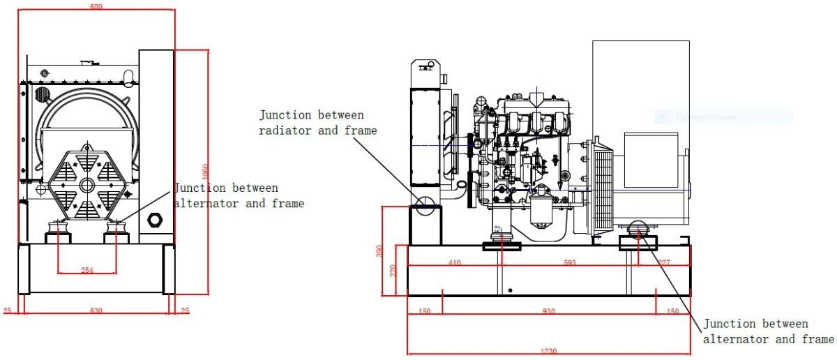 Кожух закреплен на раме генераторной установки болтовыми соединениями и имеет отверстия для строповки, что позволяет его легко и быстро снять, и обеспечить свободный доступ к оборудованию.