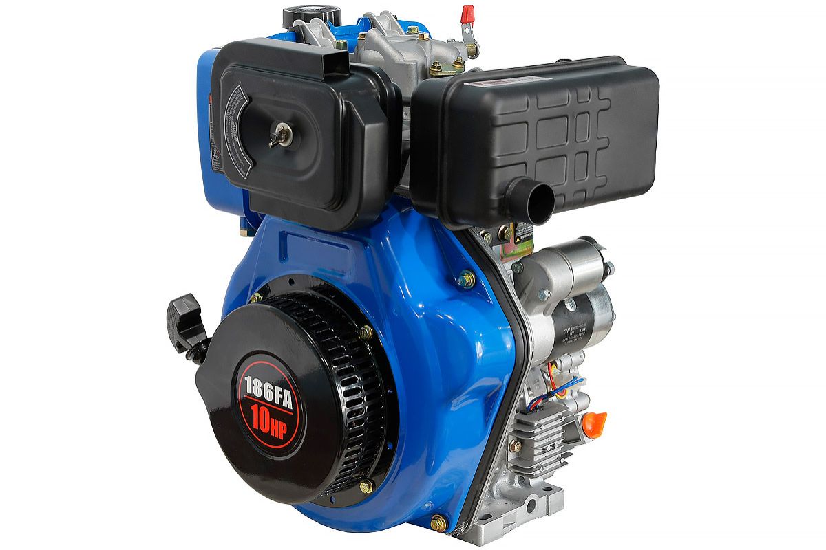 Двигатель дизельный, одноцилиндровый, с воздушным охлаждением. Вал конус (D-26 mm, L-75 mm), подходит для замены YANMAR L100N, Kipor KM186F, Lifan 186FD, Grost 186FАЕ-G. Изготовителем данных двигателей является завод Excalibur - крупнейший производи