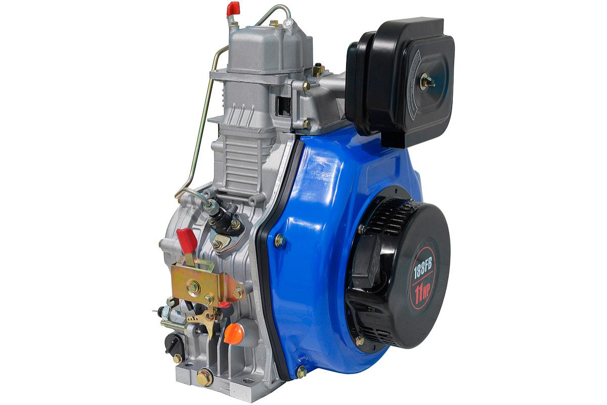 Двигатель дизельный, одноцилиндровый, с воздушным охлаждением. Вал конус (D-26 mm, L-75 mm), подходит для замены GESHT D188FAE, YANMAR L100N, Kipor KM186F, Lifan 188FD Diesel, Grost 186FАЕ-G. Изготовителем данных двигателей является завод Excalibur