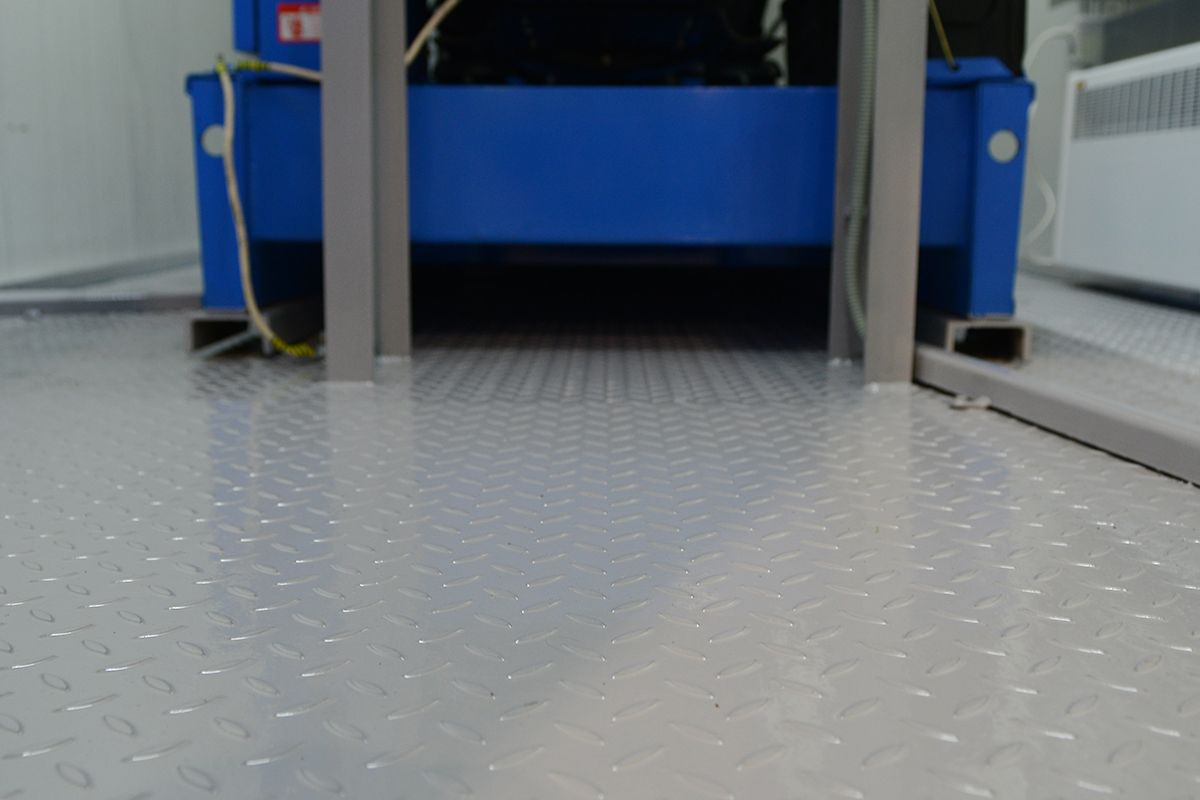 - Пол покрыт рифлёным листом толщиной 3 мм.