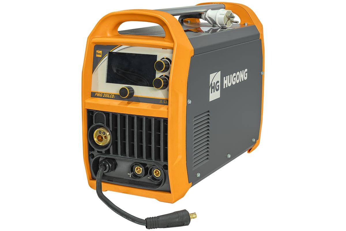 Сварочный полуавтомат HUGONG PMIG 200 III LCD производство HUGONG, для поставок в Россию HUG WELDING. PMIG 200 LCD III — идеальное решение для профессиональной сварки. Этот полуавтоматический аппарат работает от сети 220-230 В и обеспечивает стабил
