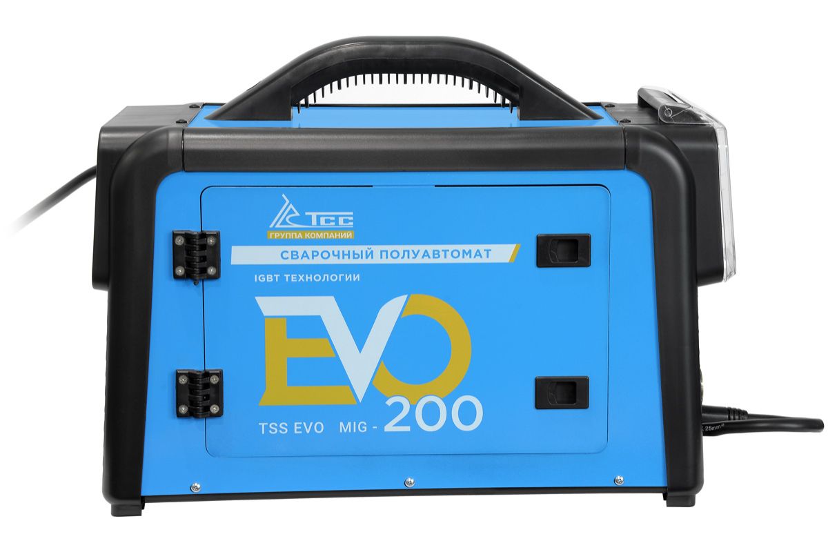 ТSS EVO MIG-200 - сварочный полуавтомат инверторный. Компактный, легкий, удобный для переноски, а также при транспортировке, хранении. Корпус из листовой стали, надежно защищает внутренние элементы от повреждения. Предназначен для п