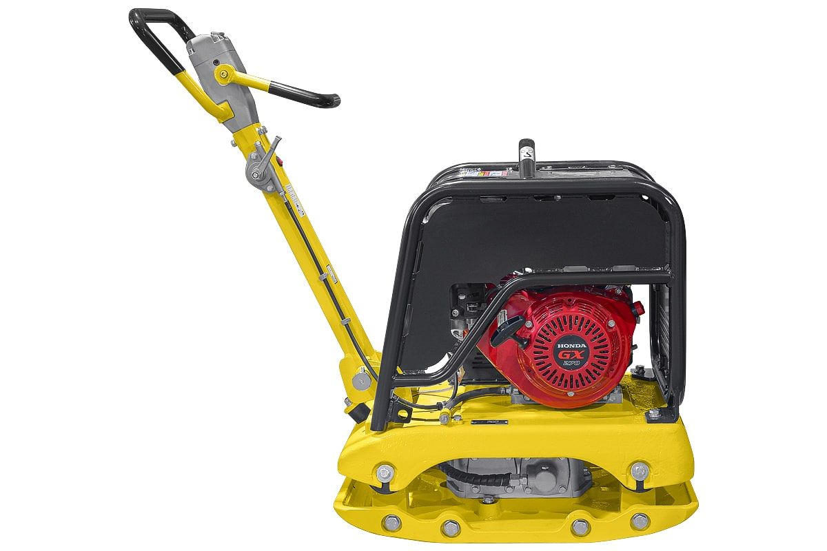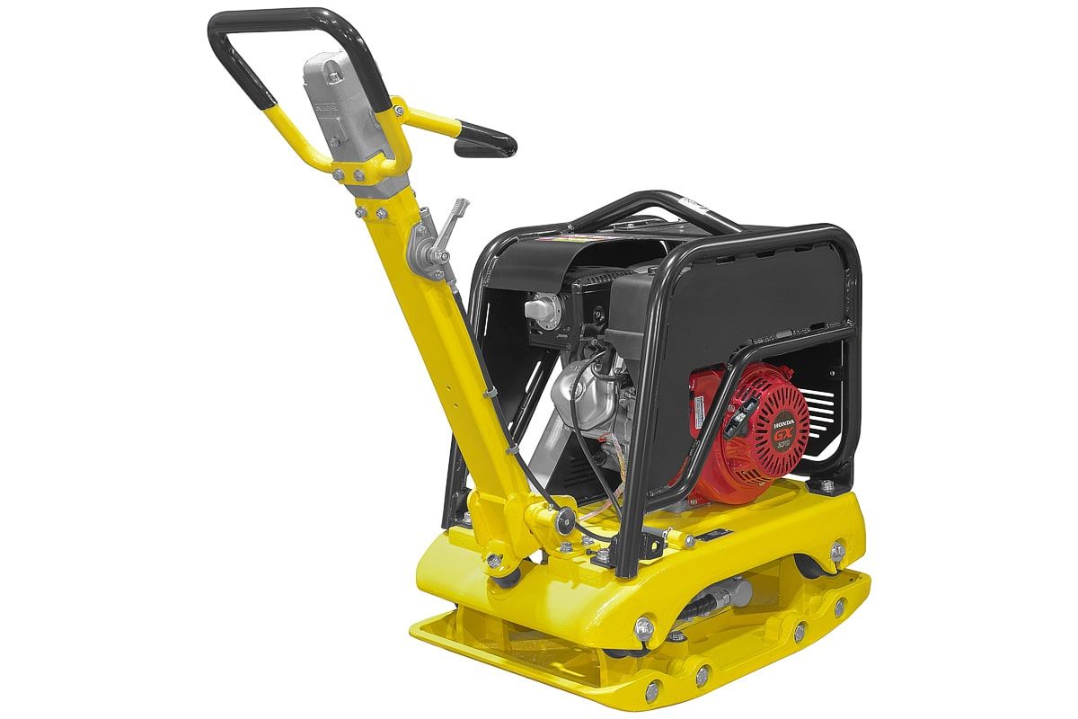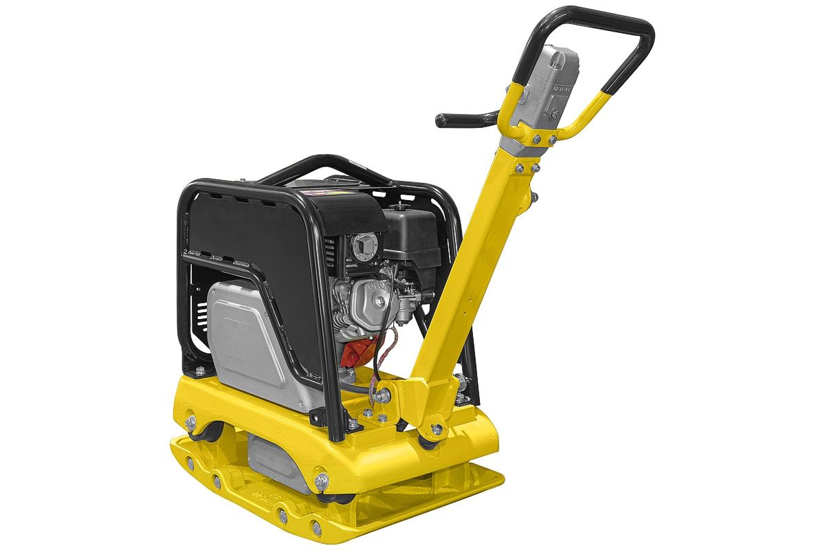 - Для удобства оператора кнопка включения/выключения реверсивного привода находится на ручке виброплиты;